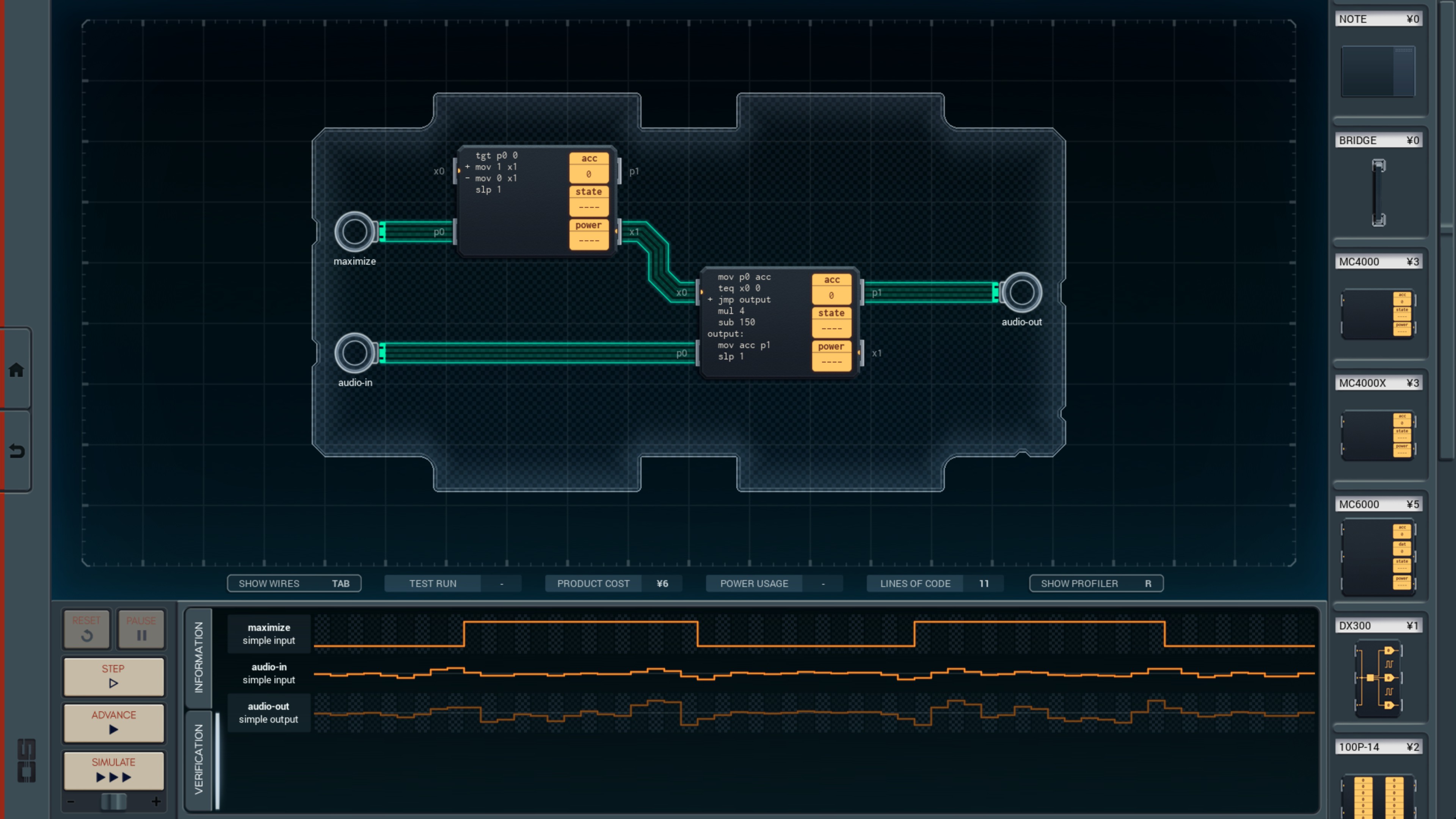 - 由于 P 引脚数量限制,使用两个控制器,一个读取 maximize 状态,一个读取音频输入,并进行数值运算。